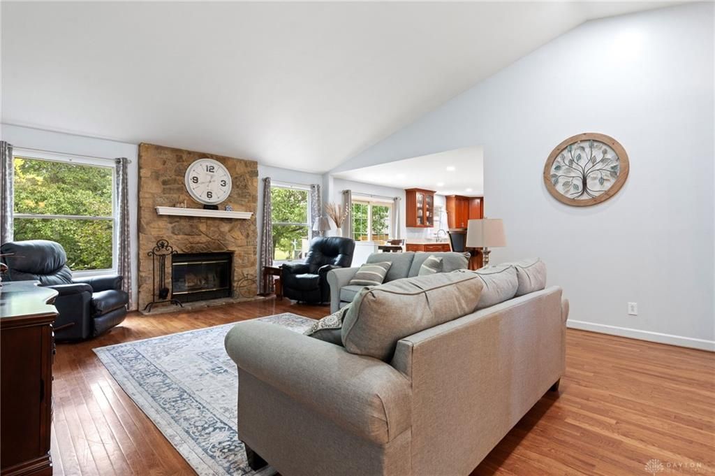A rare opportunity to own a beautifully maintained brick ranch, nestled on a quiet street in Grand Oak Estates. Offering comfort, style, and an open, light-filled layout. A spacious entryway leads into the inviting living room featuring a cathedral ceiling and stunning stone wall fireplace, flowing seamlessly into the dining room with original wood floors. The kitchen is well-appointed with high-end black stainless steel appliances, quartz countertops, a large island, pantry, an appliance closet, and beautiful wood cabinets with soft-close drawers. A private office off the entry provides a perfect work-from-home space, along with a separate laundry room for added convenience. This home offers three bedrooms, two full baths, and one half bath. The large primary suite includes a walk-in closet and an updated bathroom with double sinks and generous cabinet space. The hall bath has also been updated and freshly painted. Newer 3/4 inch hardwood floors run through the office, hallway, and bedrooms, and plantation shutters enhance the dining room, office, and all bedrooms. The partially finished basement includes a bonus room as well as ample storage space. The two car attached garage offers more storage space and convenience. Enjoy the beautifully landscaped yard, brick walkway, and stamped concrete patio with a privacy-fenced area, perfect for relaxing or entertaining. You will love the 12x16 Beachy Barns custom made shed with electric and double paned transom windows. Major updates include Pella exterior doors (2022), water heater (2020), sump pump (2021), and furnace/AC (2021). This home is ready for you!