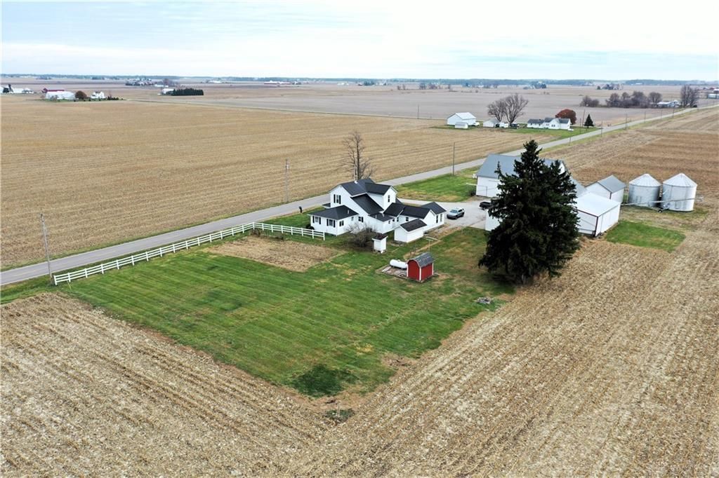 Experience peaceful country living on approximately 2.22 acres with this spacious family home, offering 3 bedrooms including a master suite, 2 bathrooms, a large living room, multiple gathering spaces, a second kitchenette, a welcoming entry room/breezeway leading to an oversized attached 1-car garage. The home is move-in ready with an abundance of closets and built-in cabinetry for storage and large windows for views from every angle. Recent updates include a new roof and gutters (2016), upgraded well (2019), high-efficiency furnace and central air (2019), updated plumbing and faucets, newer replacement windows throughout most of the home (2022), a new electrical panel box (2020), and fresh exterior paint (2025). Outbuildings include a 32' x 32' heated garage/shop, a 48' x 50' flat barn with lean-to, a 42' x 56' livestock barn with concrete turnout, a 20' x 36' flat barn, plus two steel grain bins and dryer. All outbuildings feature new metal roofs, while the garage/shop and lean-to have been recently painted. A back-up generator ensures peace of mind for hobby farming, livestock, or equipment needs. Bring your personal touches and make this property the ideal countryside retreat for raising kids and livestock! ** New leach bed is being installed**