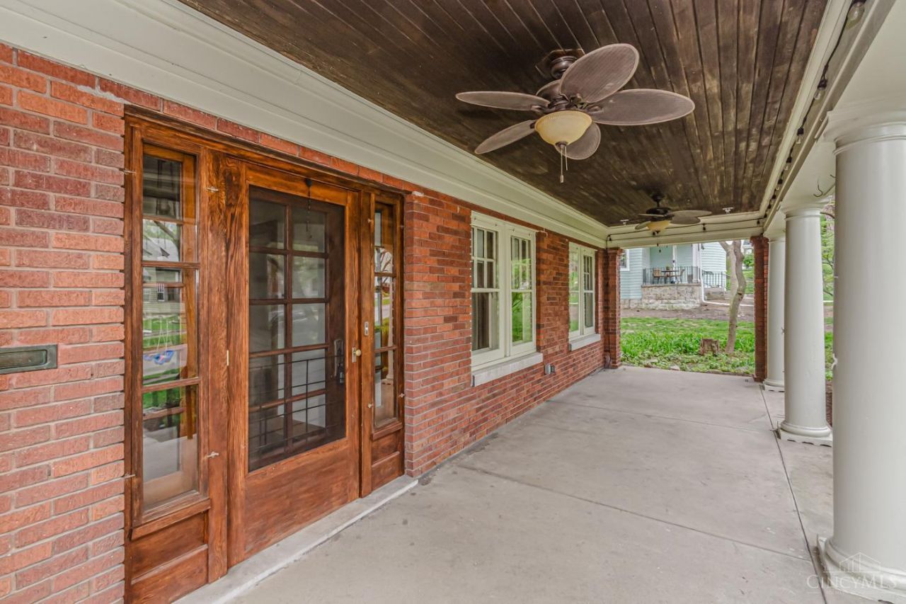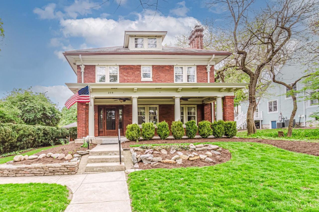 A true Oakwood treasure filled with old-world craftsmanship and character. Rich woodwork, original hardwood floors, soaring ceilings, and a striking fireplace with built-ins create timeless charm. Elegant French doors open to the dining room filled with natural light. Features include 4 spacious bedrooms, 2.5 updated baths, including a marble tile bath, and a functional kitchen with granite countertops, stainless appliances, double ovens, breakfast bar, and butler's pantry. Rare for Oakwood, the home offers an oversized upstairs laundry room and expansive attic for flexible living space. Finished basement includes a wet bar, full bath, and wine cellar. Outside features a covered front porch, private park-like backyard, 2-car garage, extra driveway, playset area, and brick paver patio. Just blocks from UD's campus dining, The Pine Club, Milano's, Ben & Jerry's, parks, schools, DCC, and OCC. Updates: AC-2024, Furnace-2024, Water Heater/Garage Door & Opener-2026, Water Softener-2025.