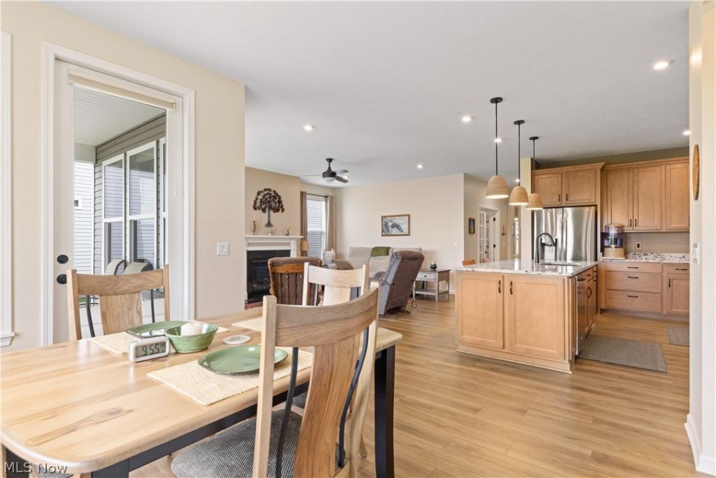 Welcome to this beautifully maintained, like-new home in Columbia Station! This property offers exceptional upgrades and thoughtful details throughout. The gourmet kitchen is a true centerpiece, featuring high-end finishes and ample space for cooking and entertaining. Upgraded flooring runs throughout the home, complemented by stylish tile upgrades in the bathrooms. The inviting living area showcases a cozy fireplace, perfect for relaxing evenings. You'll also appreciate the convenience of a dedicated laundry space with added cabinetry for extra storage. Hunter Douglas blinds are installed throughout, adding both elegance and functionality. The spacious 2.5-car garage is a standout feature, offering a 4-foot extension, full insulation, and a professionally finished epoxy floor?ideal for storage, hobbies, or keeping your vehicles in pristine condition. Additional upgrades include an Aprilaire humidifier for enhanced comfort year-round. Step outside to enjoy beautifully maintained lawn and landscaping, along with peaceful green space views that provide added privacy and a serene setting. This home truly combines comfort, quality, and modern upgrades?move-in ready and waiting for its next owner!