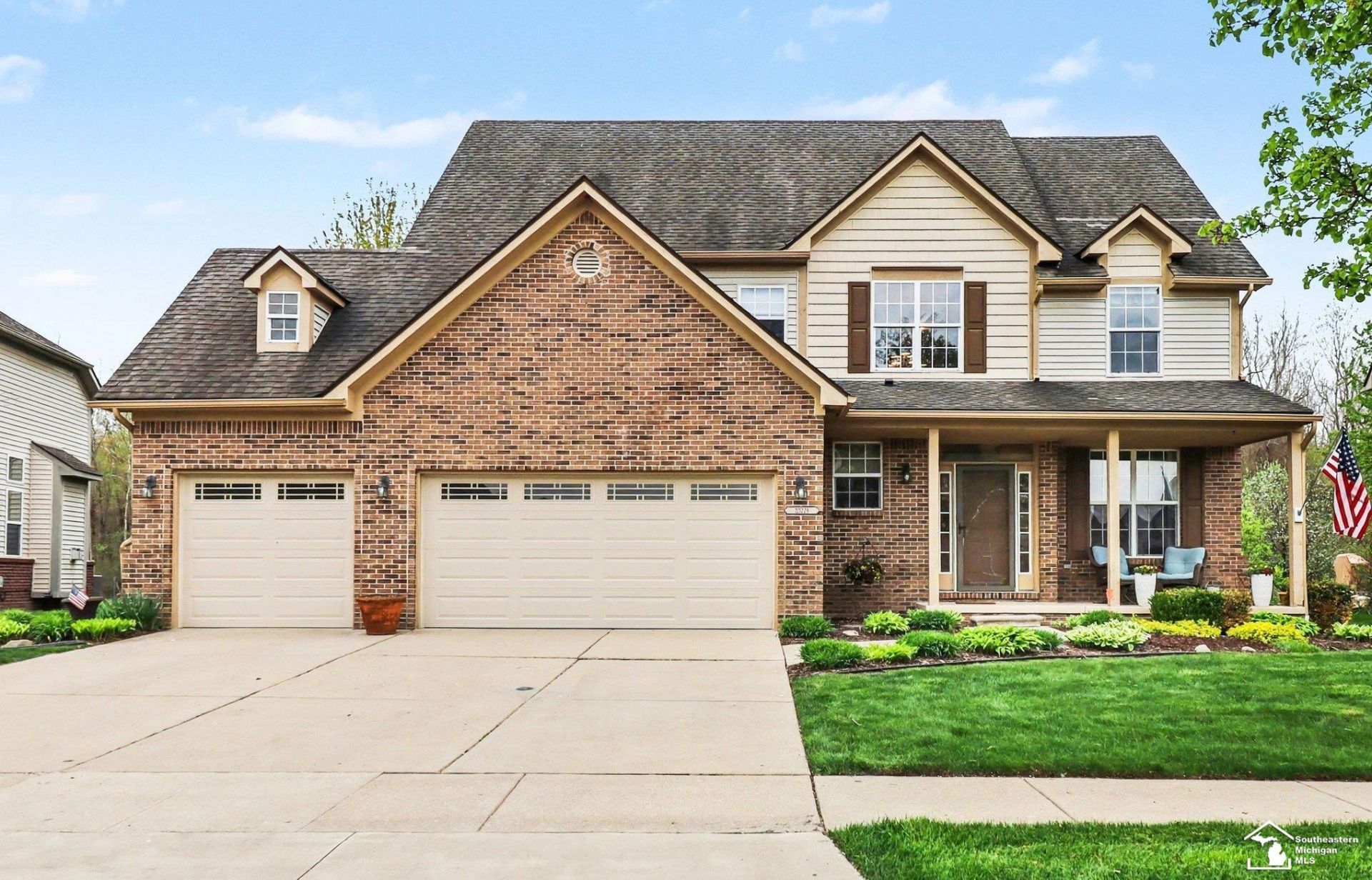 Welcome to this spacious and updated 4-bedroom, 3.5-bath home with an attached 3-car garage, located on a premium lot backing to a serene pond with fountain and wooded views. A grand two-story foyer with hardwood floors leads into the open eat-in kitchen, featuring quartz countertops and a bar-top seating area that flows into the living room with a cozy gas fireplace. The main level offers both a formal dining room and additional living/family room, providing flexible space for entertaining or everyday living. The kitchen doorwall opens to a deck overlooking the peaceful backyard setting. Upstairs, the expansive primary suite features two walk-in closets, dual quartz vanities, a garden tub, and separate shower. The additional bedrooms and bathrooms are generously sized, offering comfort and convenience. The finished basement is perfect for entertaining, complete with a second gas fireplace, wet bar with beverage refrigerator and dishwasher, and a full bathroom with Jacuzzi tub. Additional features include in-ground irrigation and neighborhood amenities such as a pool, clubhouse, and tennis courts, plus close proximity to three Metroparks. Updates include a hot water tank (2022) and new furnace (2025) with warranty. Dont miss this opportunity to own a well-appointed home in a desirable community with scenic views!