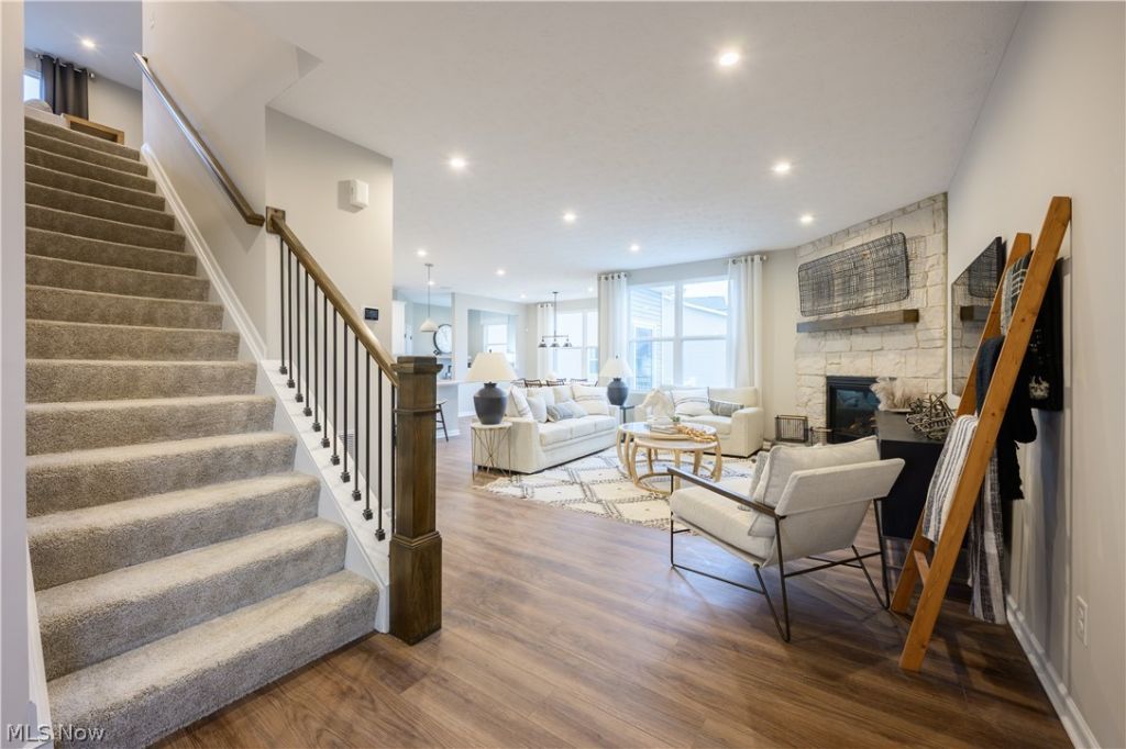 Stunning 4 Bedroom/2.5 Bath MODEL HOME in Olmsted's desirable Preserve community! This meticulously maintained model home features a large kitchen with quartz countertops and stainless-steel appliances, flowing into a bright family room equipped with a stone fireplace. The 3rd car garage adds an expanded driveway and extra space for storage. The second level boasts carpeting and an expansive master suite featuring a large walk-in closet and private suite bath. Outdoor living is elevated by an expansive maintenance free lighted deck. Located in a top-rated school district just minutes from Downtown Olmsted Falls and Crocker Park, this move-in-ready gem combines premium upgrades with an unbeatable location. Schedule your private showing today!