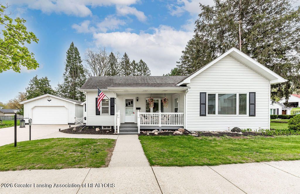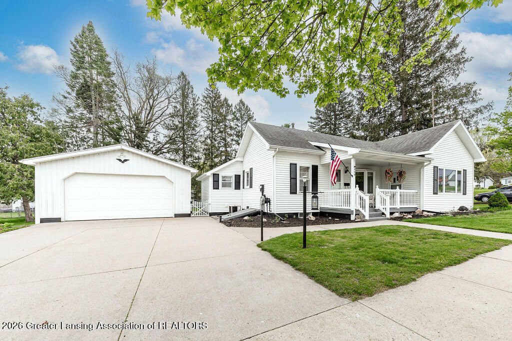 Welcome to this cottage in town! This 2 bedroom 1 bath home has been thoughtfully updated down to every detail. The spacious living room greets you and leads you to the primary bedroom with double closets. The eat-in kitchen has been painted and updated with newer countertops, appliances and sink. The second bedroom can double as an office and leads to the remodeled bathroom that hosts a walk-in tiled shower with dual shower heads, and a custom vanity. Towards the back of the house the den and laundry room offer extra space for relaxing with custom built shelves and rolling storage bins that stay with the home. Two car garage with extra space in the back for lawnmower or yard tools. 16x36 pole barn adds extra storage. See attached for list of updates.