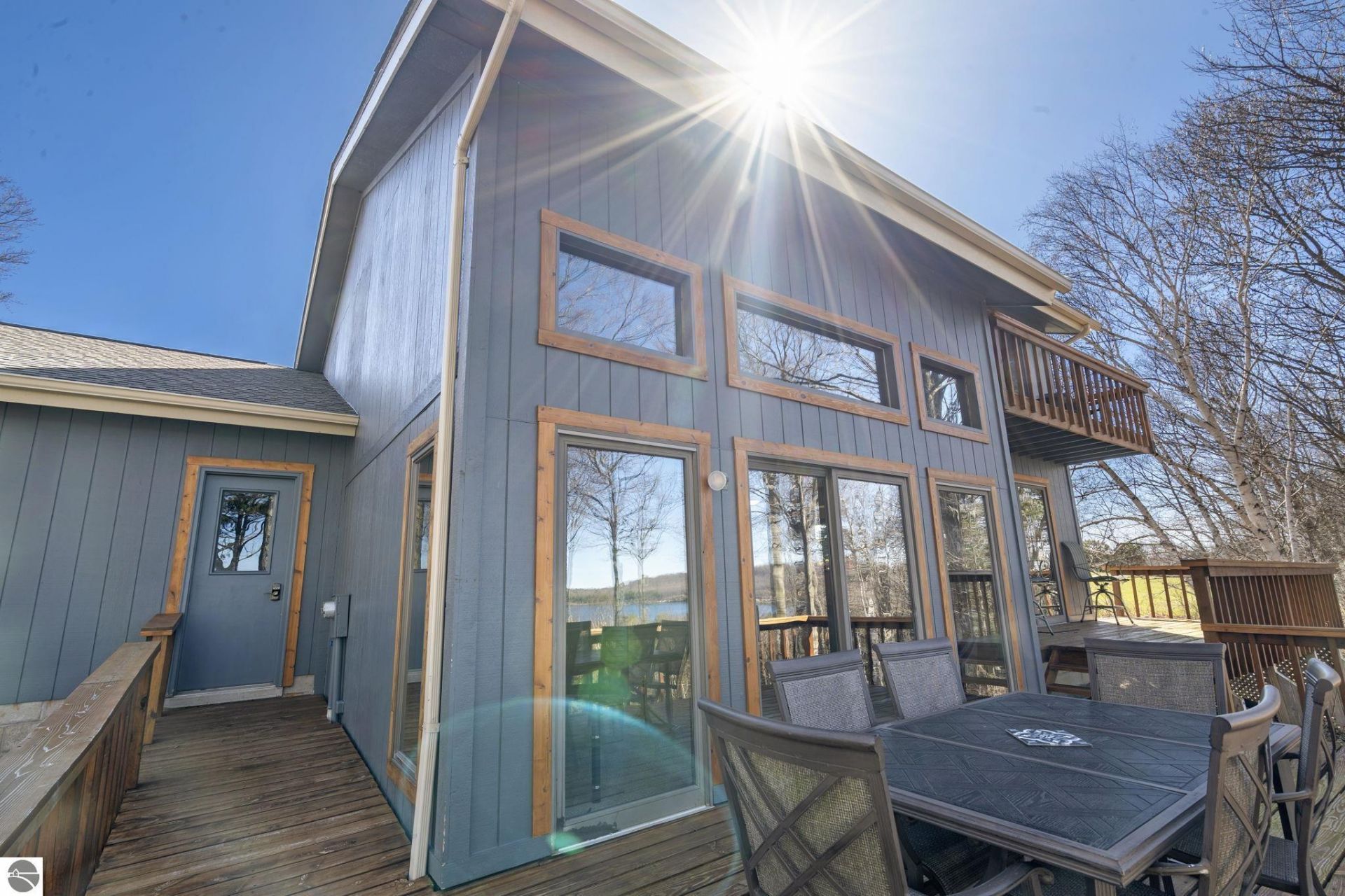 Stunning 4-bedroom, 2.5-bath retreat on 2.36 private acres with breathtaking panoramic views of Lake Leelanau. Previously operated successfully as a short-term rental (STR), this turnkey property offers immediate income potential for investors or continued personal use as a year-round or vacation home. Walls of windows and multiple sliding glass doors flood the home with natural light and open to expansive decks; ideal for enjoying morning coffee or stunning sunset views over the water. The open-concept layout features warm wood tones, a dramatic 2 story stone fireplace, and a well-equipped kitchen perfect for entertaining. Spacious bedrooms and well-appointed bathrooms provide comfortable accommodations for everyone. Primary suite has a unique sunken spa that makes relaxing after a long day a breeze. Enjoy serene wooded privacy, abundant wildlife, and direct access to outdoor living at its finest in desirable Leelanau County. Close to charming villages, wineries, and Lake Michigan beaches; yet worlds away from it all. Recent updates include Driveway ($25k), Natural Gas, Gutters, Appliances, Irrigation, Flooring, Furnace, A/C, Water Heater. A rare opportunity to own a slice of Lake Leelanau paradise with built-in rental history!