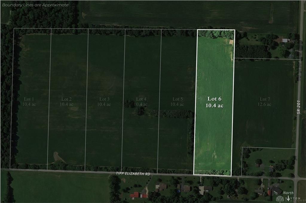 Wide-Open Acreage with Maximum Usability in Bucolic Country SettingLot 6 features 10.4 acres of fully usable, gently rolling terrain—no HOA. With highly flexible open space, the entire property can be efficiently utilized for a custom home, outbuildings, gardens, or farming. With minimal restrictions, you are free to bring the builder/ architect of your choice to design your forever home.Offering 341 feet of frontage on Tipp Elizabeth Road, access is straightforward. The open nature of the land provides the opportunity for a variety of country pursuits such as vegetable gardening, a chicken coop, or raising other small farm animals. Meanwhile, amenities are just a short drive away to charming Tipp City or Dayton.Located in Elizabeth Township near parks and nature preserves, and within the highly regarded Miami East School District. Fiber internet is available. A practical and versatile homesite with excellent long-term value. Subject to survey approval & taxes TBD.